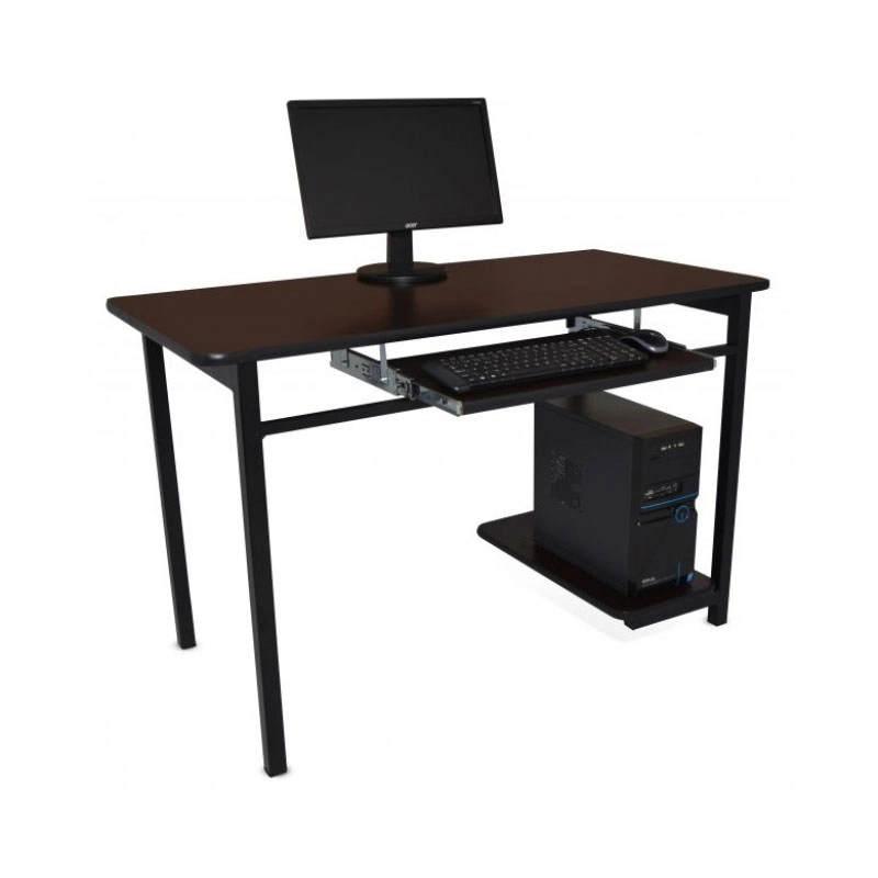 FABRICADA EN PERFIL DE ACERO DE 1 1/4″ CON MARCO DE 2″ X 1″ CUBIERTA DE MELAMINA DE 19 MM Y CANTOS EN MOLDURA T. CON PORTA TECLADO Y PORTA C.P.U. CON CORREDERAS DE EXTENSIÓN Y SEGURO. MEDIDAS DE 1.20 X 0.60 X 0.75 MTS DE ALTURA.