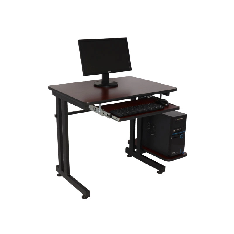 FABRICADO EN PERFIL DE ACERO DE 2″ X 1″, CON NIVELADORES CUBIERTA EN MELAMINA DE 19 MM Y CANTOS EN MOLDURA T CON PORTA TECLADO Y PORTA C.P.U.. CON CORREDERAS DE ACERO CON EXTENSIÓN Y SEGURO. MIDE 80 CM X 60 CM X 75 CM.