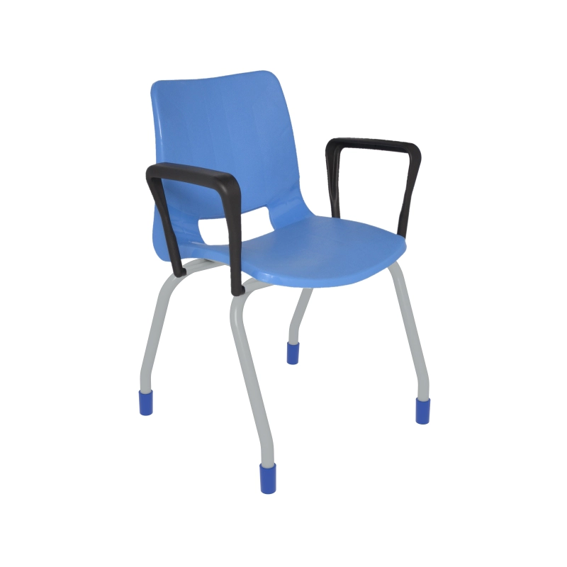 ESTRUCTURA FABRICADA DE TUBULAR REDONDO DE 1” CAL14 ACABADO EN CROMO O PINTURA HORNEADA MICROPULVERIZADA EN COLOR GRIS ALUMINIO. ASIENTO Y RESPALDO INTEGRADOS POR UNA CONCHA DE POLIPROPILENO CON TRANSFERENCIA TERMICA; EN COLOR VERDE LIMA, MANDARINA(NARANJA),VINO, CELESTE, GRIS Y ROJO., BRAZOS DE POLIPROPILENO.
